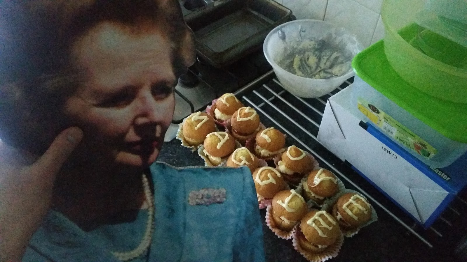 With her new-found vitality, we made some cakes together. Mini-cakes, more of them than Liberal Democrat MPs. Similar to Victoria sponge cakes – though I didn’t mention the name Victoria, for obvious reasons. Margaret is the greatest woman this country has EVER known. Sorry, mum.